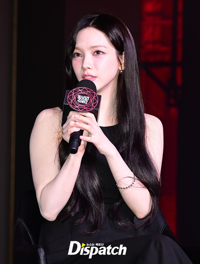 [Dispatch=이호준기자] '에스파' 카리나가 18일 오전 서울 마포구 호텔 나루 서울 엠갤러리에서 열린 넷플릭스 오리지널 예능 '미스터리 수사단' 제작발표회에 참석했다.
