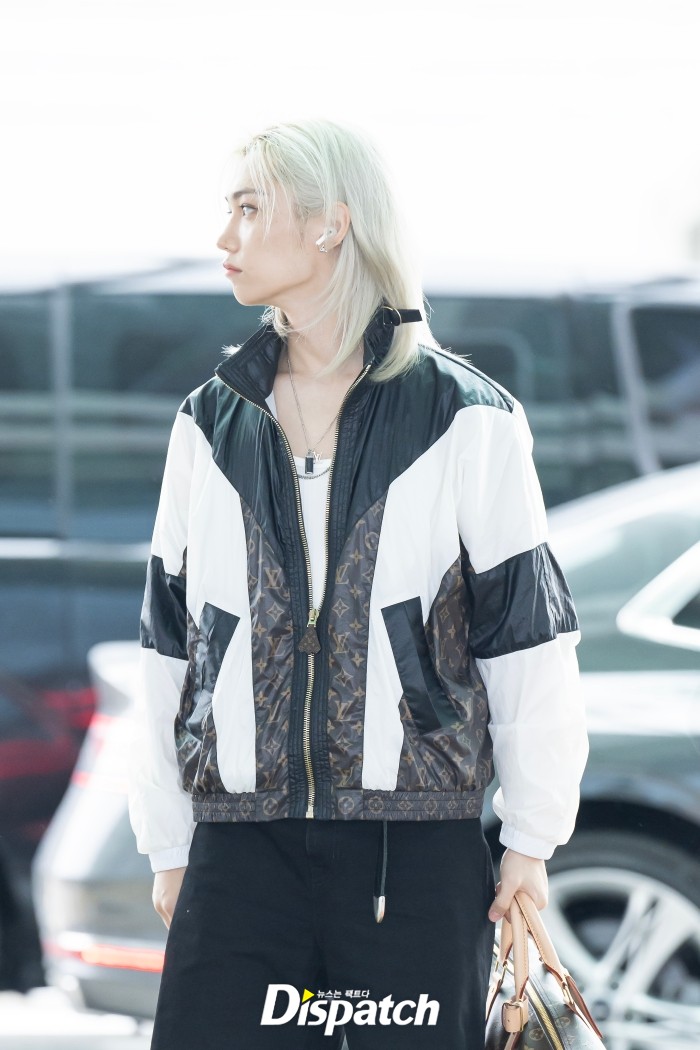 필릭스는 점퍼와 팬츠로 명품룩을 선보였다. 잘생긴 비주얼이 돋보였다.