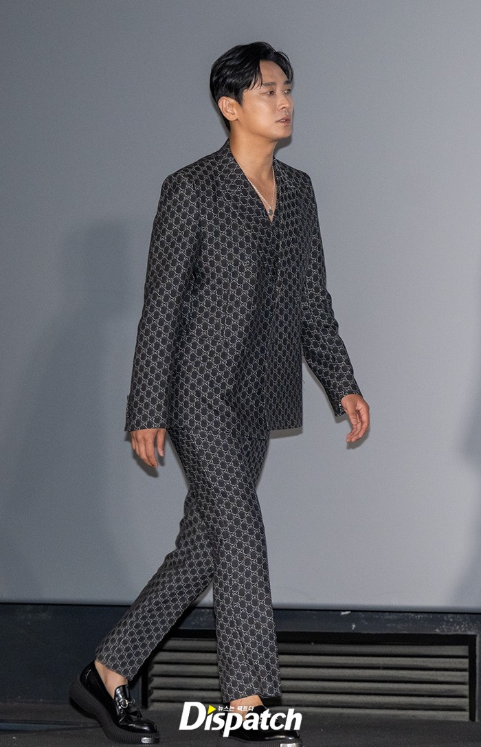 주지훈은 독특한 패턴의 수트로 맵시를 뽐냈다. 모델 못지 않은 피지컬이 눈길을 끌었다.