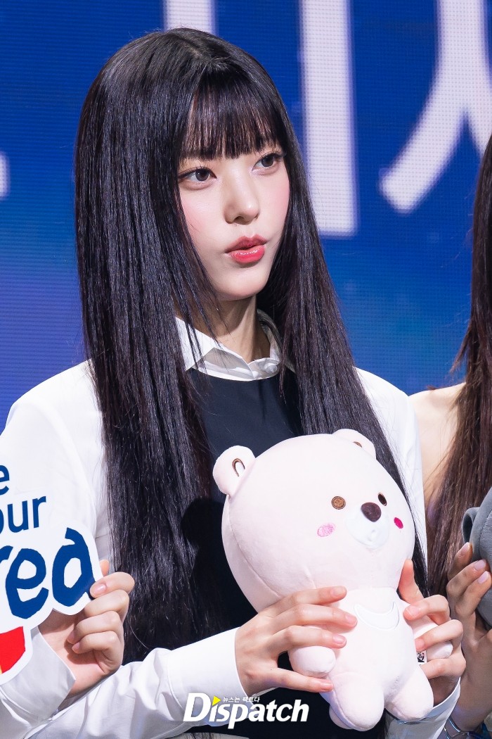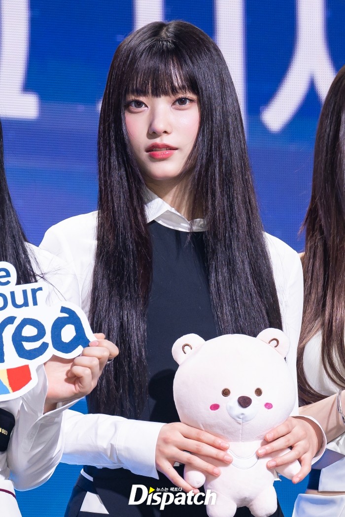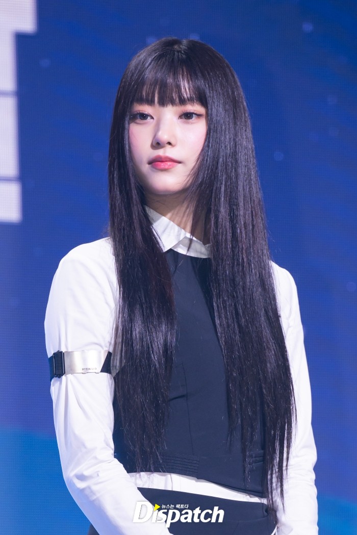 해린은 화이트&블랙으로 단정한 패션을 완성했다. 인형같은 미모가 돋보였다.