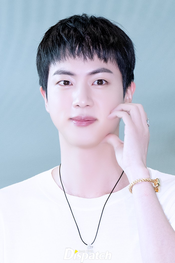 진은 이날 화이트 룩으로 댄디한 매력을 뽐냈다. 조각같은 비주얼이 돋보였다.