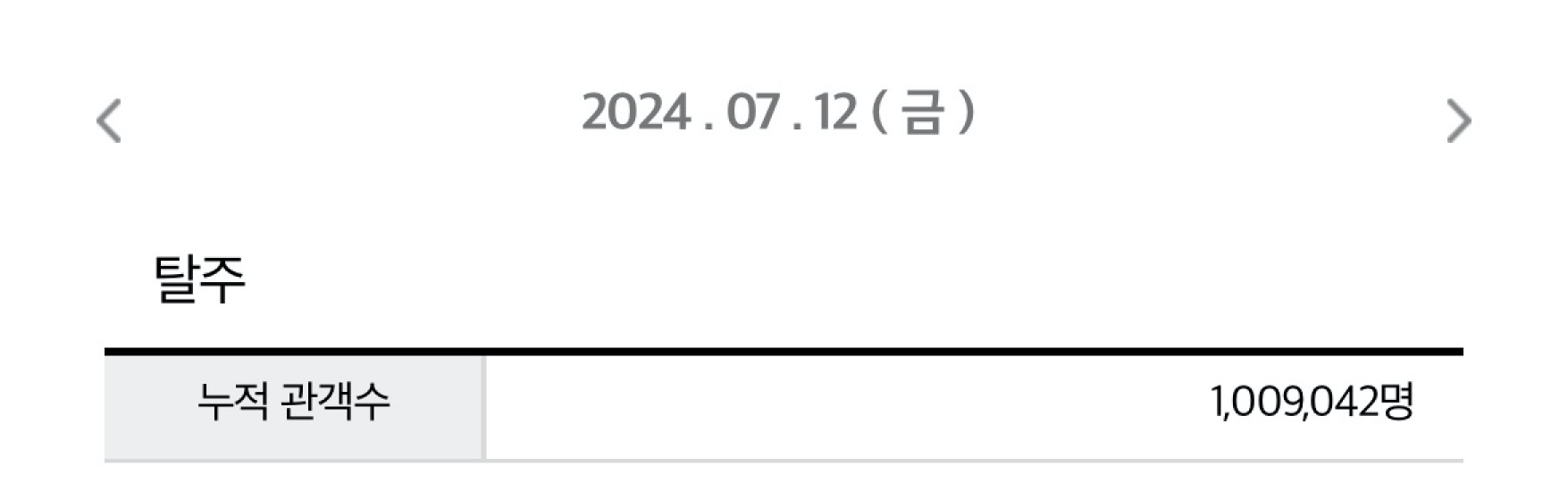 영진위 영화관 통합전산망에 따르면, '탈주'는 12일 오전 기준 누적 관객수 100만 9,042명을 동원했다. 개봉 10일 만에 100만 관객을 넘겼다.