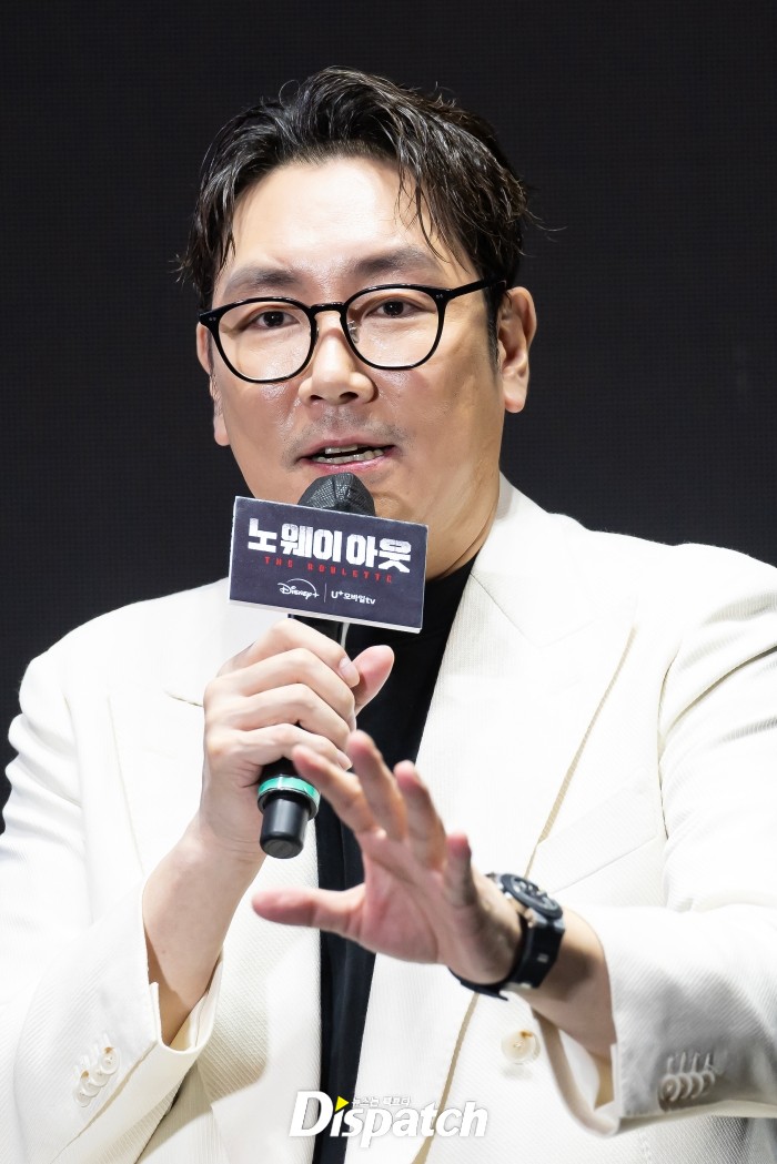 디즈니+ '노 웨이 아웃 : 더 룰렛' 제작발표회가 24일 콘래드 서울 호텔에서 열렸다. 배우 조진웅, 유재명, 김무열, 염정아, 성유빈, 이광수, 김성철 등이 참여했다.