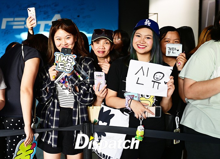현장은 이날 42(팬덤명)들로 인산인해를 이루었다. 팬들은 폭발적인 함성으로 멤버들을 맞았다. 신유는 사인과 눈인사로 마음을 전했다.