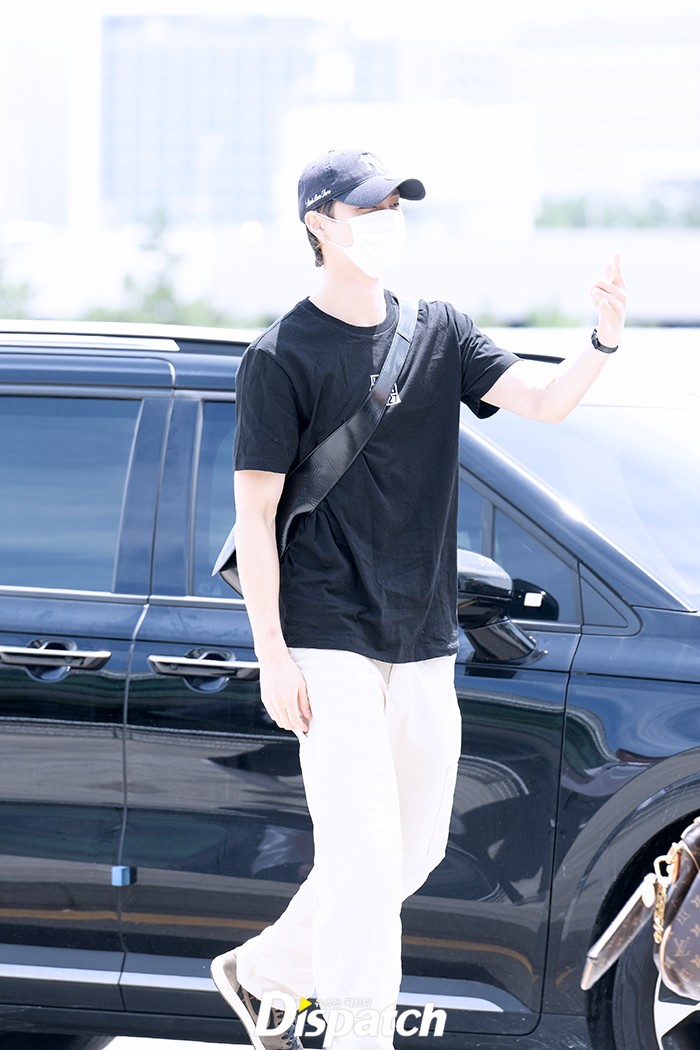 쟈니는 베이지팬츠에 블랙 티셔츠로 수수한 공항패션을 연출했다. 훈훈한 비주얼이 돋보였다.
