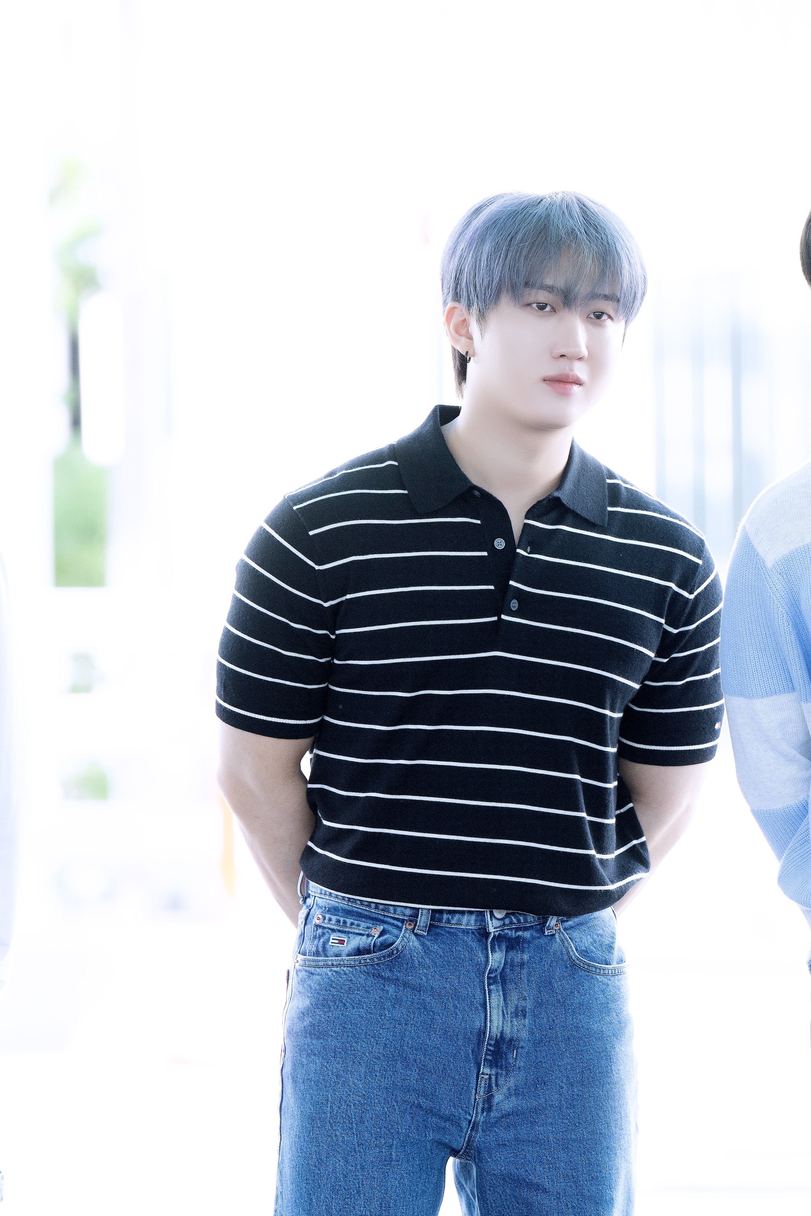 창빈은 데님 팬츠에 폴로 셔츠로 댄디한 공항패션을 연출했다. 훈훈한 비주얼이 돋보였다.