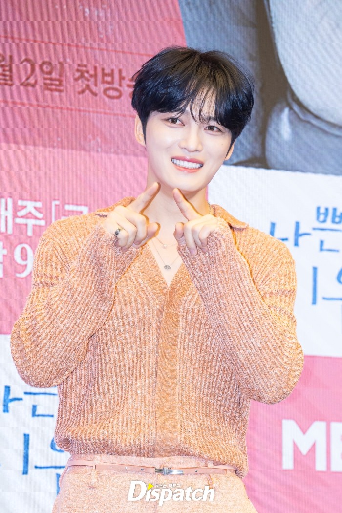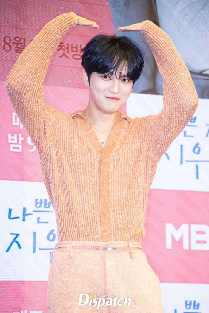 김재중은 오렌지 컬러 니트와 팬츠로 멋을 냈다. 잘생긴 비주얼이 돋보였다.