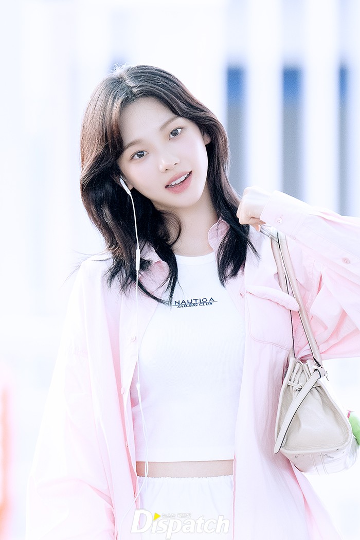 카리나는 화이트룩에 핑크 셔츠를 매치해 러블리한 공항패션을 연출했다. 청순한 미모가 돋보였다.