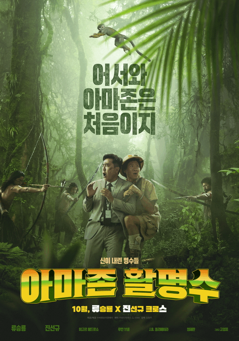 영화 '아마존 활명수'(감독 김창주)가 오는 10월 개봉을 확정했다. 티저 포스터 2종도 함께 공개했다. 류승룡과 진선규의 코믹 무드를 담았다.