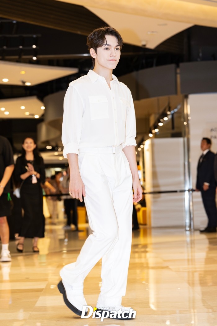 [Dispatch=송효진기자] '세븐틴' 버논이 7일 오후 서울 송파구 롯데백화점 잠실점 에비뉴엘에서 진행된 한 뷰티브랜드 팝업 이벤트 오픈 행사에 참석했다.