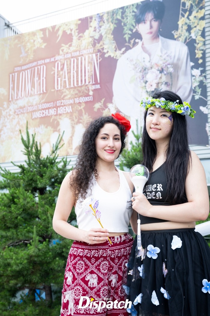 화창한 날씨 아래, 팬들이 모여들었습니다. 콘서트명 '플라워 가든'에 맞춰 꽃단장을 하고 도착했는데요. 연령, 국가, 성별을 가리지 않고 팬심을 전했습니다.