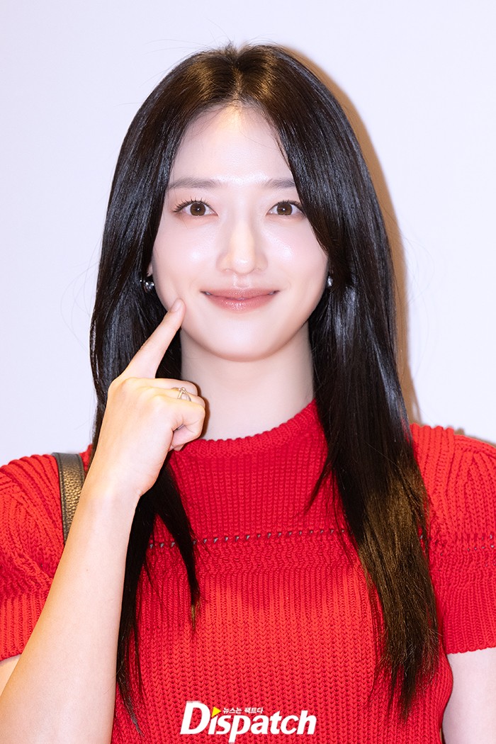 표예진은 블랙 팬츠에 레드 니트로 시크한 패션을 연출했다. 우아한 분위기가 돋보였다.