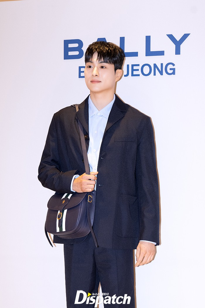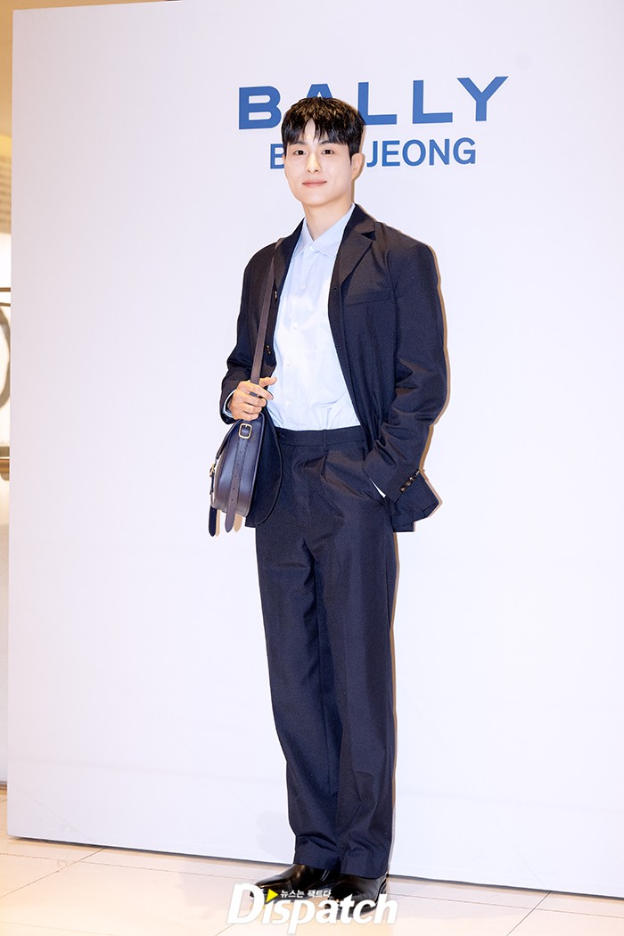 정건주는 네이비 수트로 캐주얼한 매력을 뽐냈다. 조각같은 비주얼이 돋보였다.