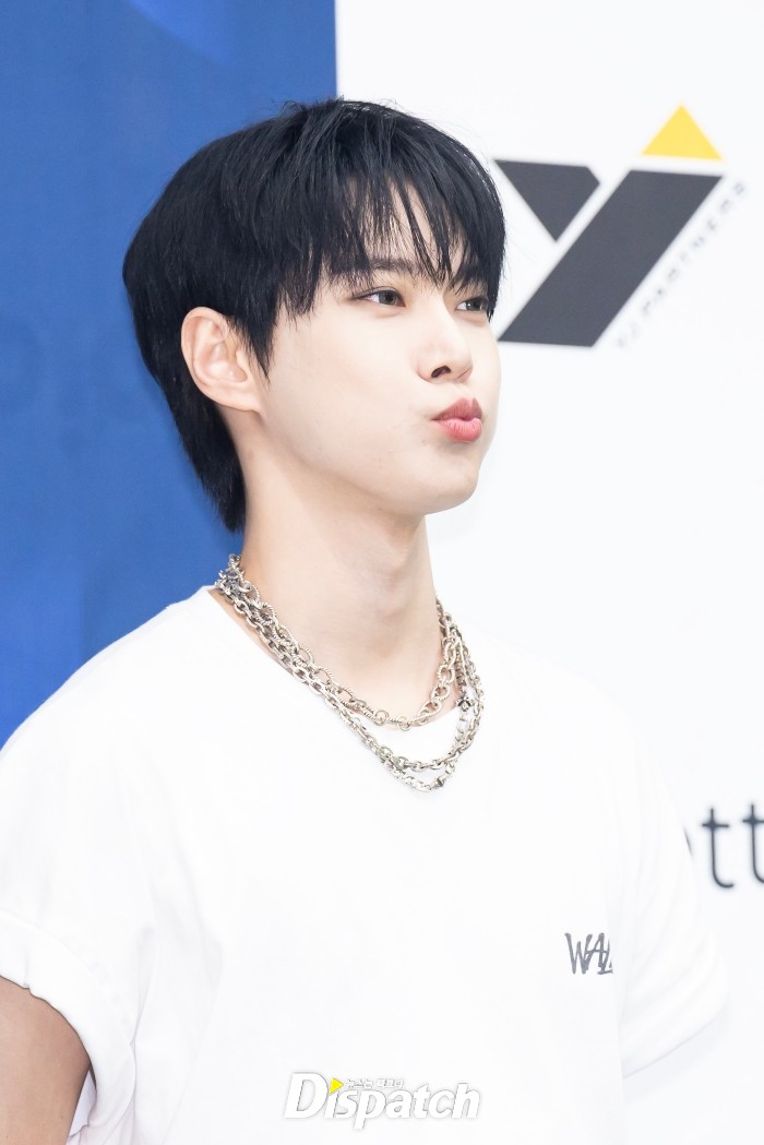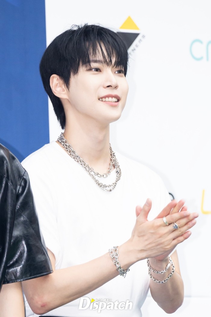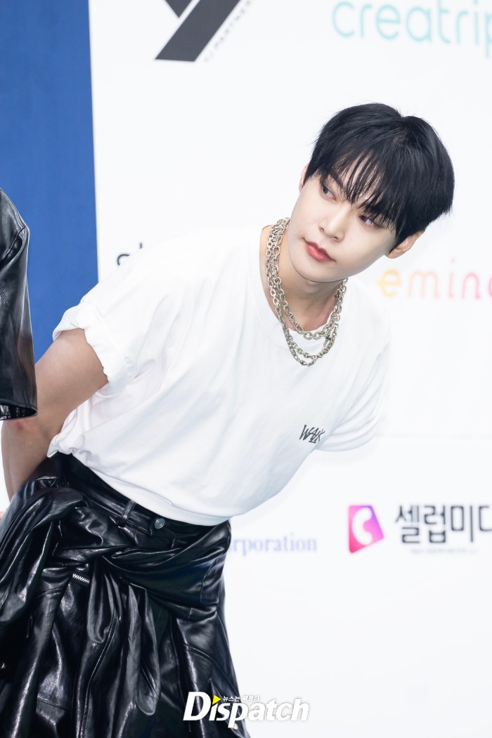 'NCT127' 도영은 화이트 티셔츠와 블랙 레더 팬츠로 멋을 냈다. 잘생긴 비주얼이 돋보였다.