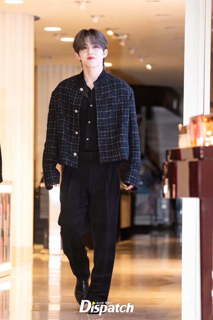 에스쿱스는 블랙 트위드 재킷으로 멋을 냈다. 잘생긴 비주얼이 돋보였다.