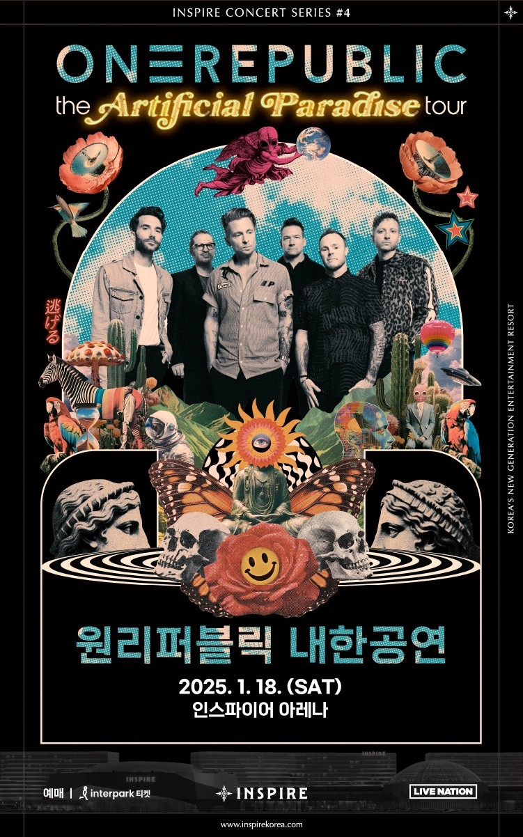 라이브네이션코리아 측은 5일 원리퍼블릭 내한 공연 개최 소식을 알렸다. 내년 1월 18일 인스파이어 아레나에서 공연할 예정이다.