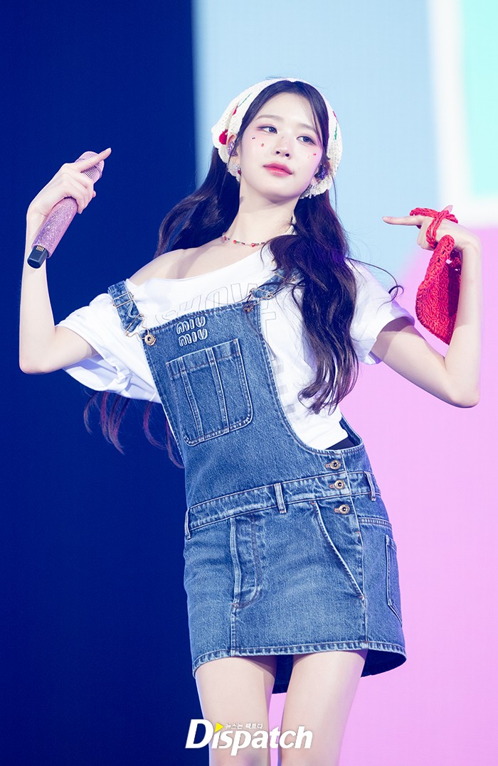 장원영은 흰티에 청스커트로 청순 미모를 보여줬다. 다양한 팬서비스로 공연자을 뜨겁게 달궜다.