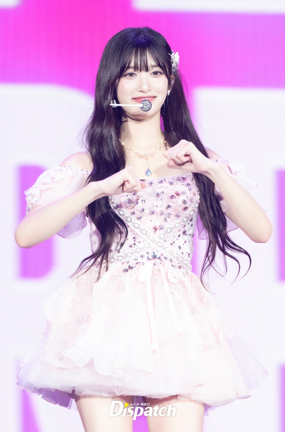 분위기를 바꿨다. 꽃 울타리 앞에 멤버들이 등장했다. 객석이 신기하리만큼 조용해졌다. 안유진이 첫 소절을 부르자 환호가 터졌다. 응원봉 물결이 일었다.