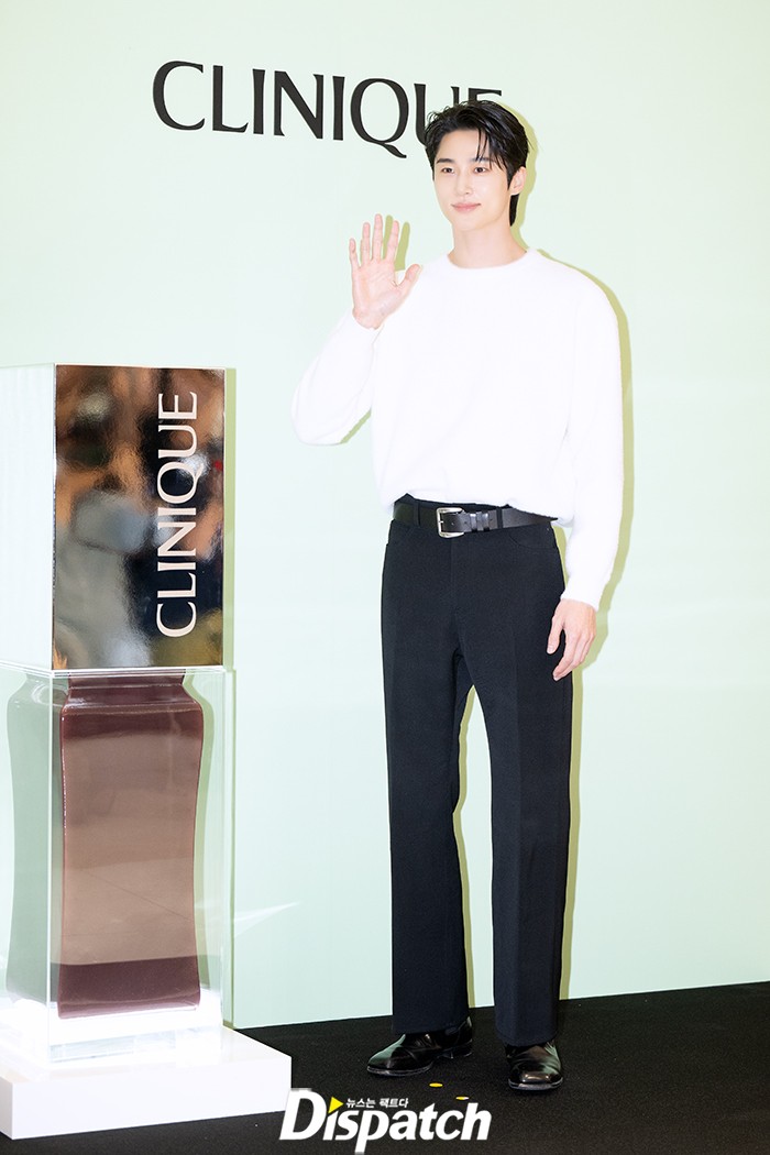 변우석은 블랙 슬렉스에 화이트 니트로 댄디한 패션을 연출했다. 조각같은 비주얼이 돋보였다.