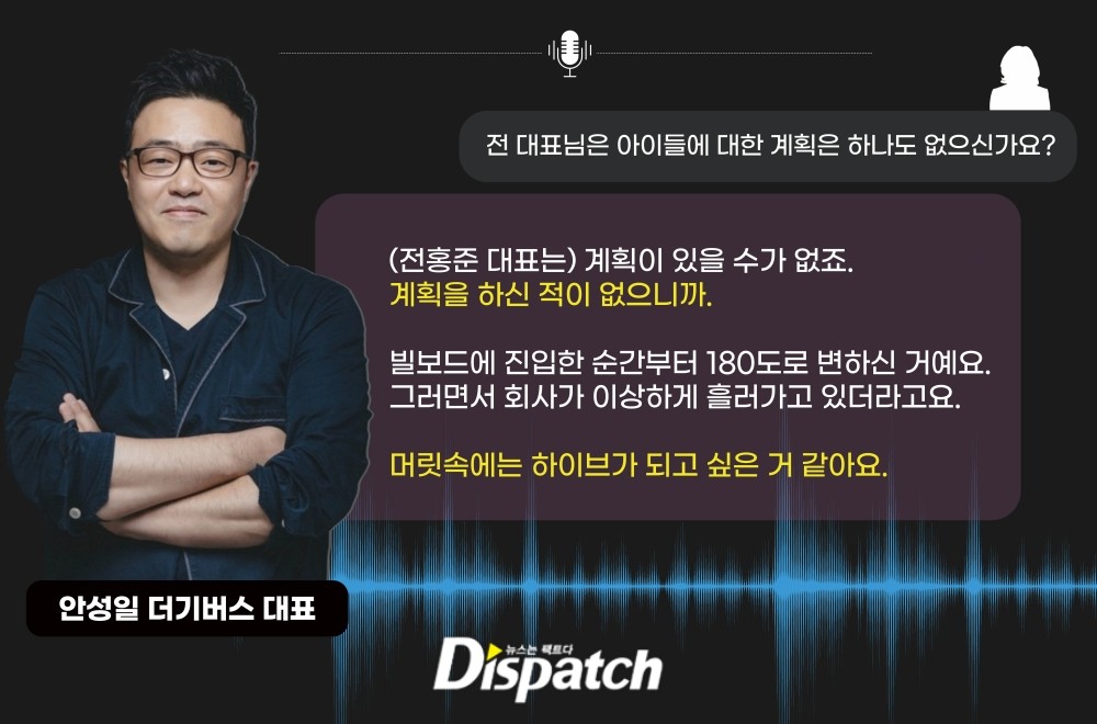 “갑자기 빌보드에 진입한 순간부터 완전 180도로 변하신 거예요. 그러면서 회사가 이상하게 흘러가고 있더라고요.“ (안성일 녹취록)