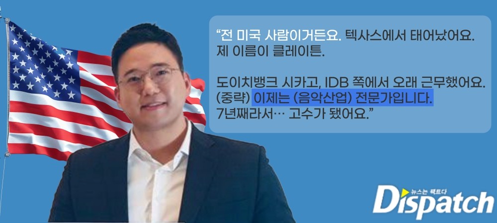 클레이튼 : 전홍준 대표는 성을 방으로 바꾸셨어요. 거의 방시혁 대표님이 된 그런 느낌. 제가 변호사님 빨라 잡아드릴 테니까 이분들이 조언해 주실 거예요.