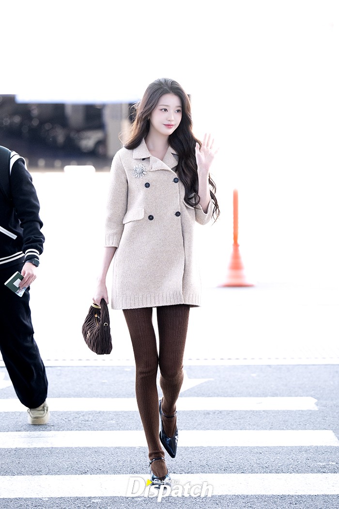 장원영은 브라운 원피스로 청순한 공항패션을 연출했다. 우아한 미모가 돋보였다.