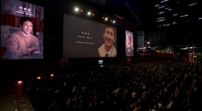 한국 영화 공로상은 故 이선균에게 돌아갔다. 그가 출연한 필모그래피와 인터뷰 멘트를 엮어 추모 영상을 내보냈다. 객석을 비춘 화면에는 몇몇 배우들이 눈물을 훔치고 있었다.