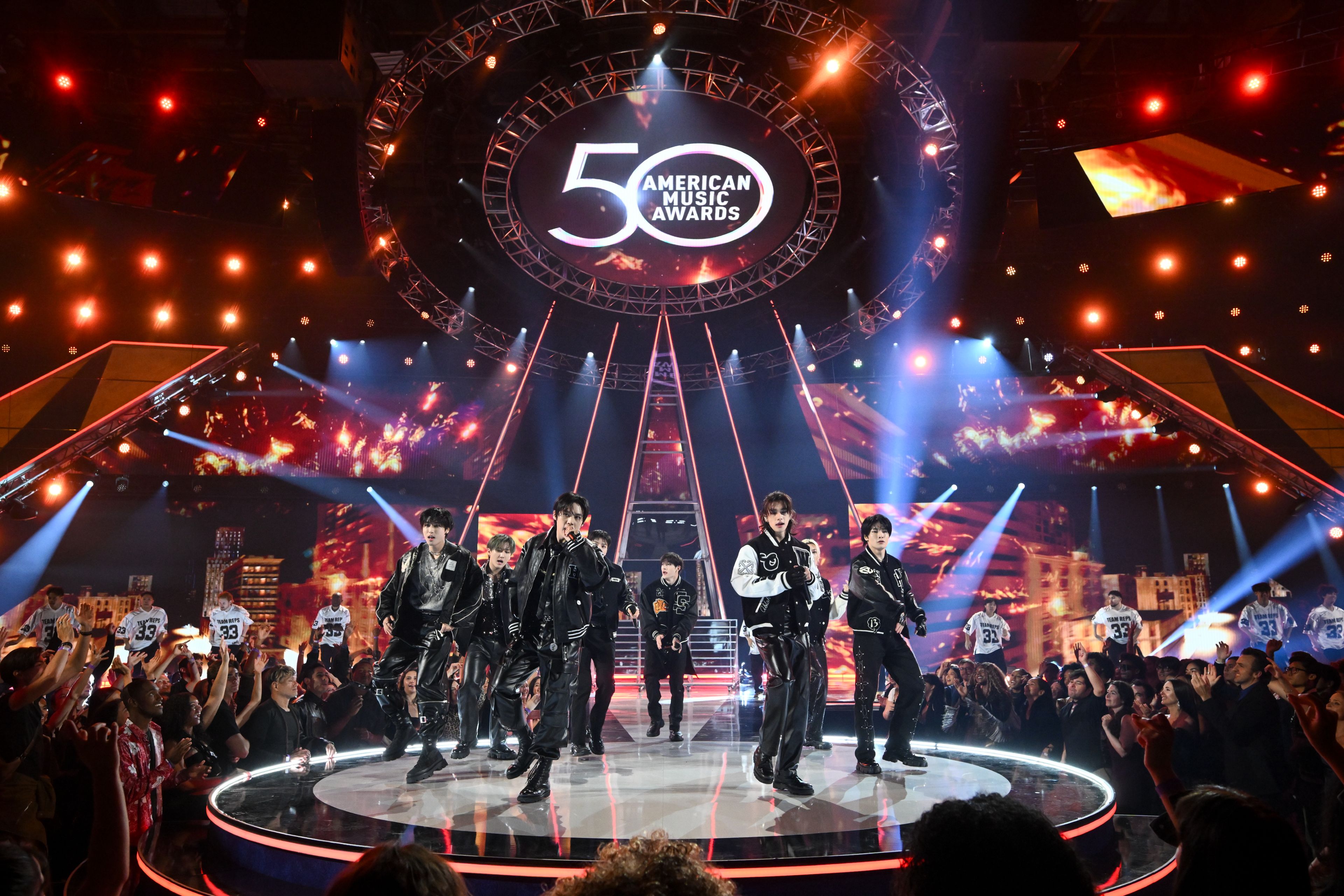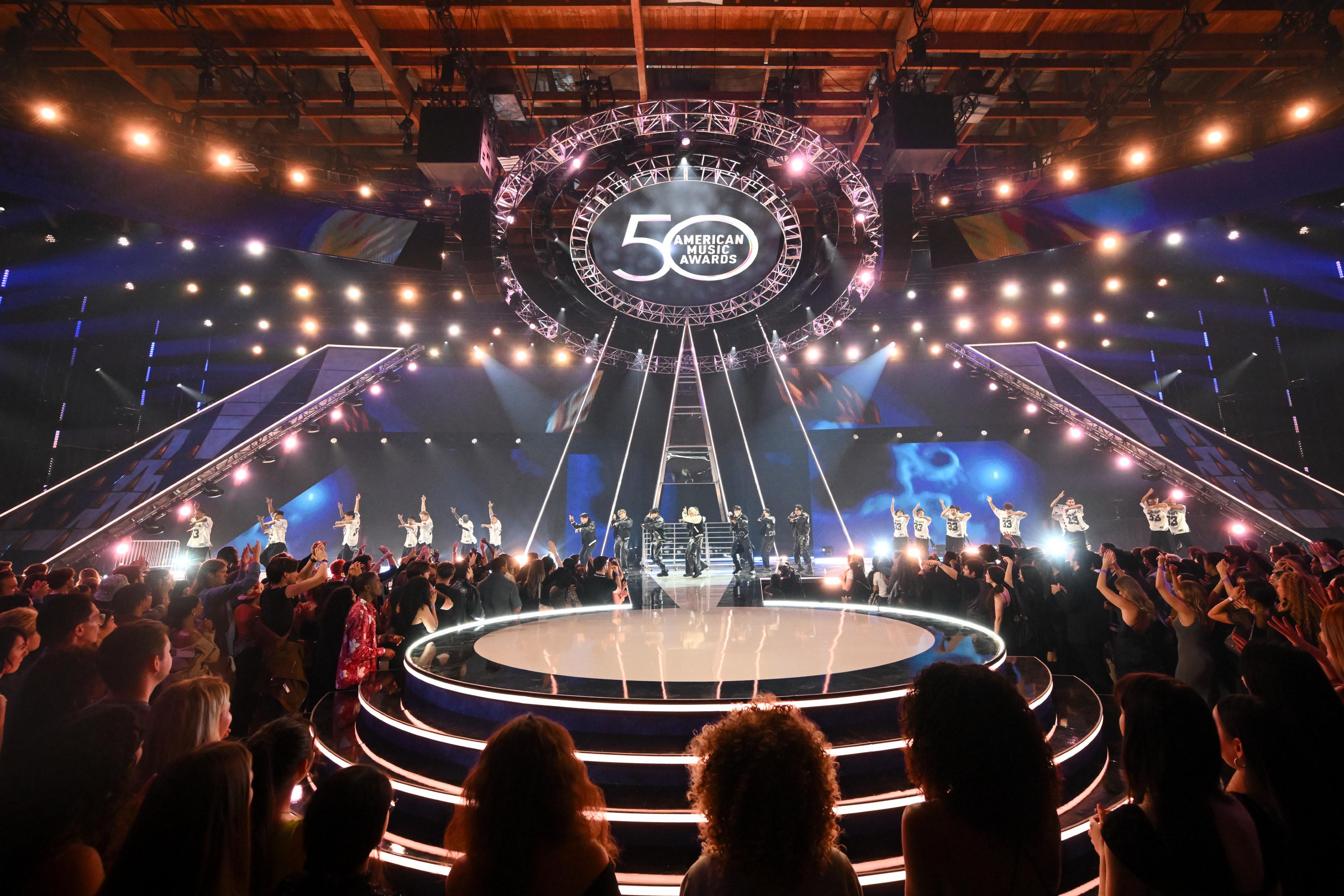 스트레이 키즈는 지난 7일 미국 로스앤젤레스에서 개최된 '아메리칸 뮤직 어워즈 50주년 스페셜'(이하 'AMAs')의 퍼포머로 참석했다. K팝 그룹 사상 방탄소년단에 이어 해당 무대에 2번째 올랐다.