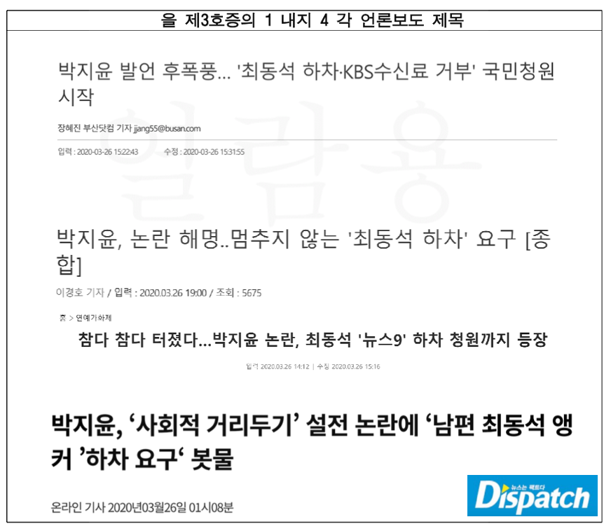 최동석의 발언은 기사로 이어졌고, 박지윤은 "예정된 행사였다"고 해명했다. 그래도 최동석은 비난을 멈추지 않았다.