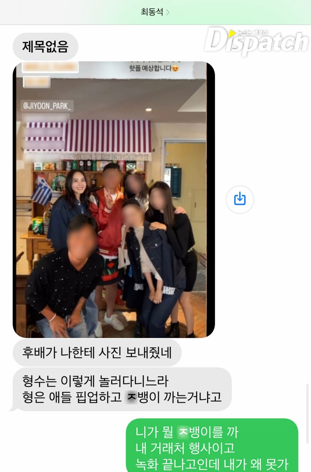 박지윤 : 내가 뭐 떠벌리고 다녔어? 나는 내 친구들이 있는 단톡방에 얘기했어.