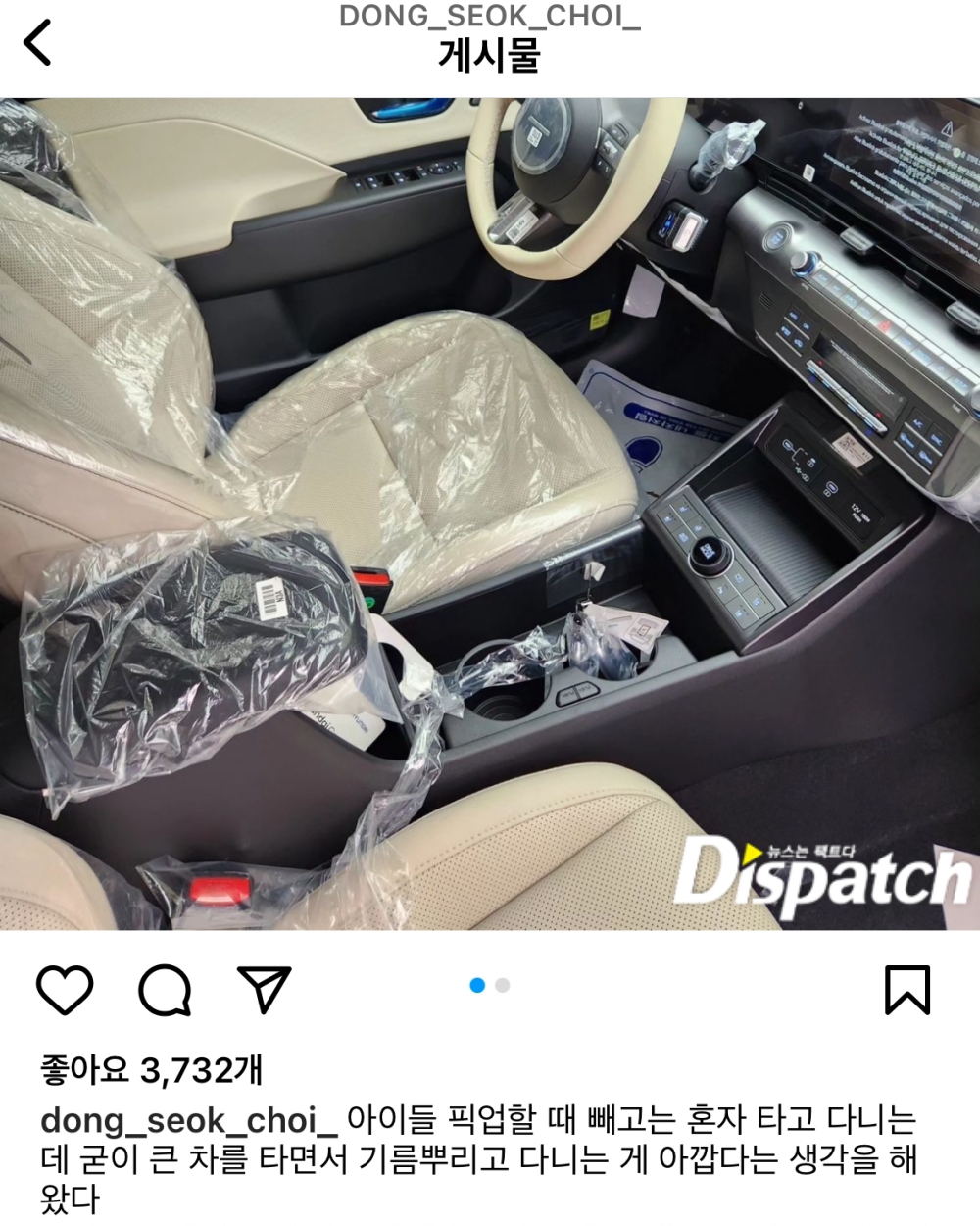 최동석은 그동안 BMW 3, 제네시스, 닛산, BMW GT, 레이, 디스커버리, 볼보 XC90 등을 탔다. 이 차량의 리스비는, 박지윤의 몫이었다.
