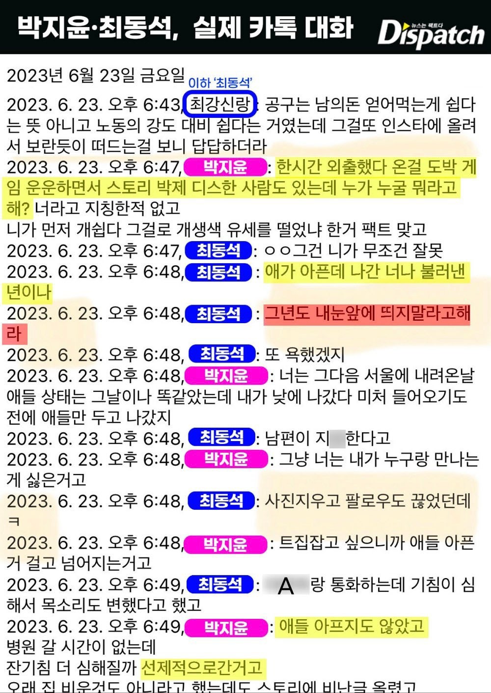 다시, 최동석과 박지윤의 대화다.