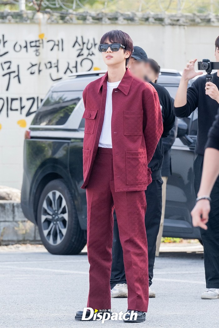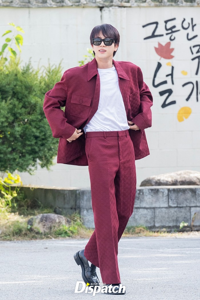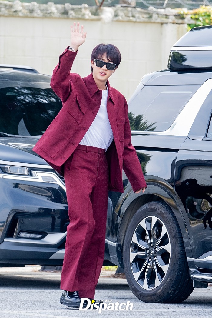 올해 6월 12일 방탄소년단 멤버 중 가장 먼저 제대한 진이 부대를 찾아 제이홉의 전역을 축하했다. 취재진의 마이크를 직접 들고 인터뷰를 기다리는 모습이었다.