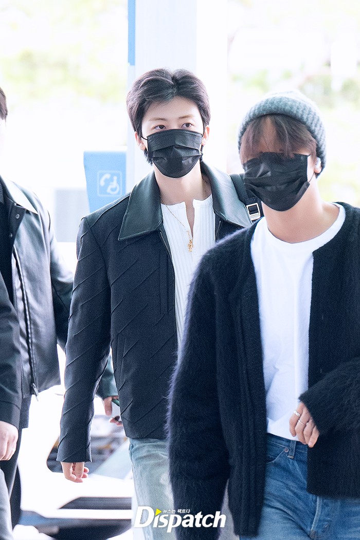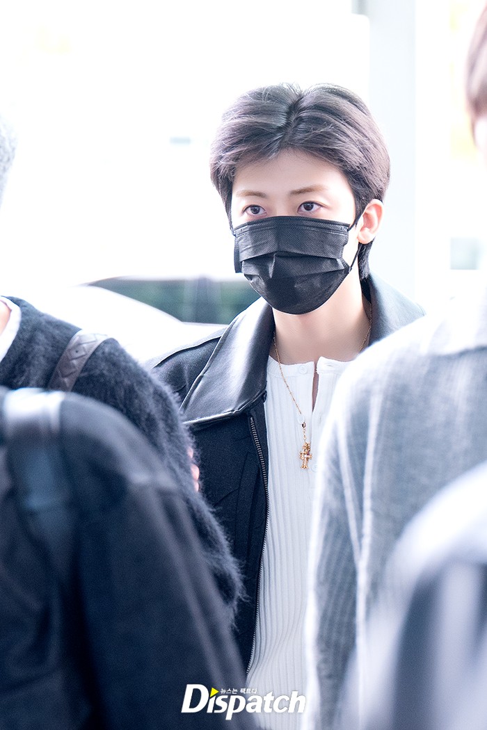 재민 데님 팬츠에 블랙 재킷으로 시크한 공항패션을 연출했다. 조각같은 비주얼이 돋보였다.