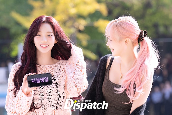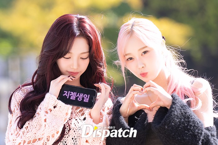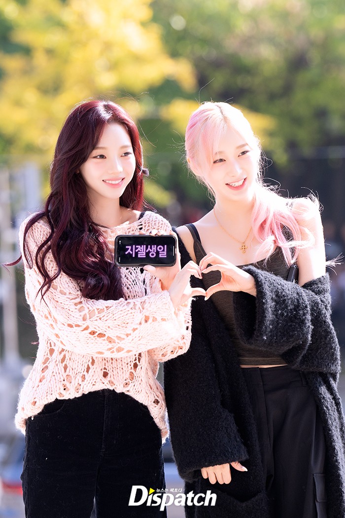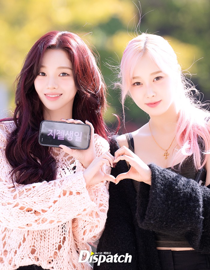 카리나와 지젤은 청순한 비주얼로 시선을 사로잡았다. 지젤 생일을 축하하는 문구로 재치 넘치는 포즈를 연출했다.