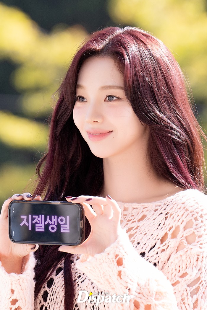 카리나는 지젤 생일을 맞아 깜짝 문구를 선보였다. 깜찍한 매력이 돋보였다.