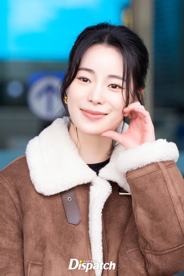 임지연은 블랙 스커트에 무스탕 재킷으로 우아한 공항패션을 연출했다. 인형같은 미모가 돋보였다.