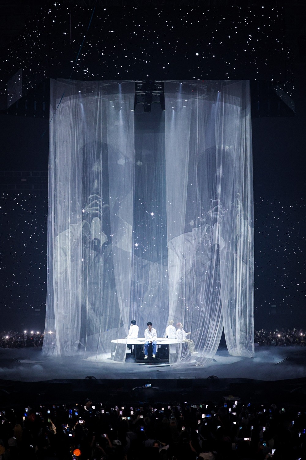 이들은 '데자부', '9와 4분의 3 승강장에서 너를 기다려', '0X1=러브 송'을 열창했다. 360도 무대를 활용했다. 멤버들은 뒤돌아 모든 방향 관객 얼굴을 마주 봤다.