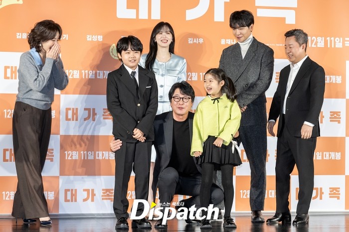'대가족'이 12일 서울 광진구 롯데시네마 건대입구점에서 제작보고회를 열었다. 김윤석, 이승기, 김성령, 강한나, 박수영, 양우석 감독이 자리했다.