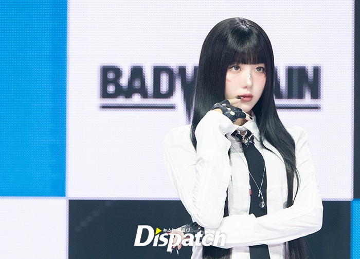 윤서는 화이트 셔츠에 블랙 롱스커트로 무대에 섰다. 가죽 장갑과 악세서리로 강인한 이미지를 보여줬다.