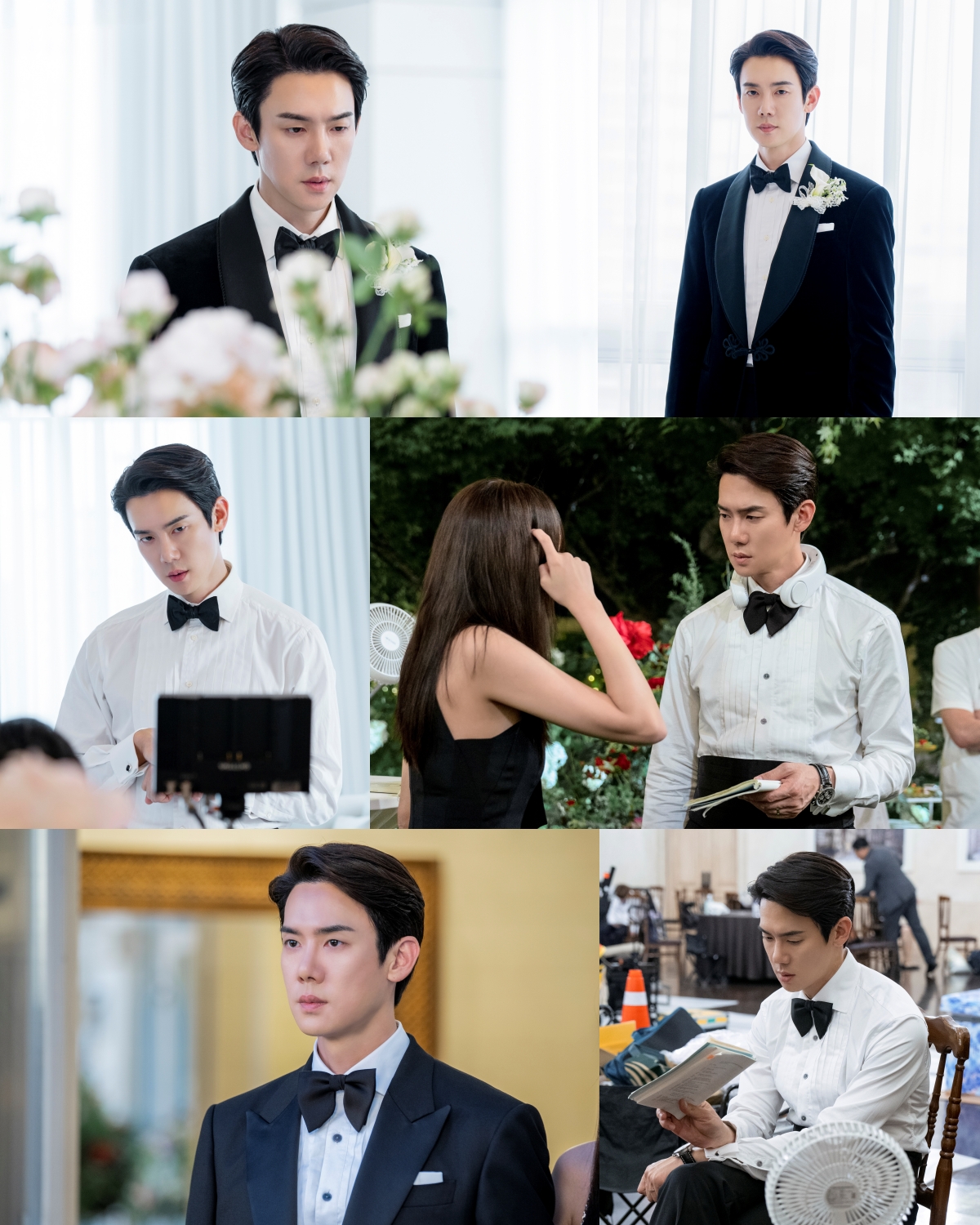 유연석이 포착됐다. 최연소 대통령실 대변인이자 홍희주(채수빈 분) 남편 백사언으로 변신했다. 턱시도에 포마드 헤어스타일을 소화했다.