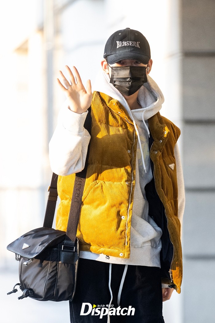 '엔하이픈' 선우는 패딩 베스트와 후디로 멋을 냈다.