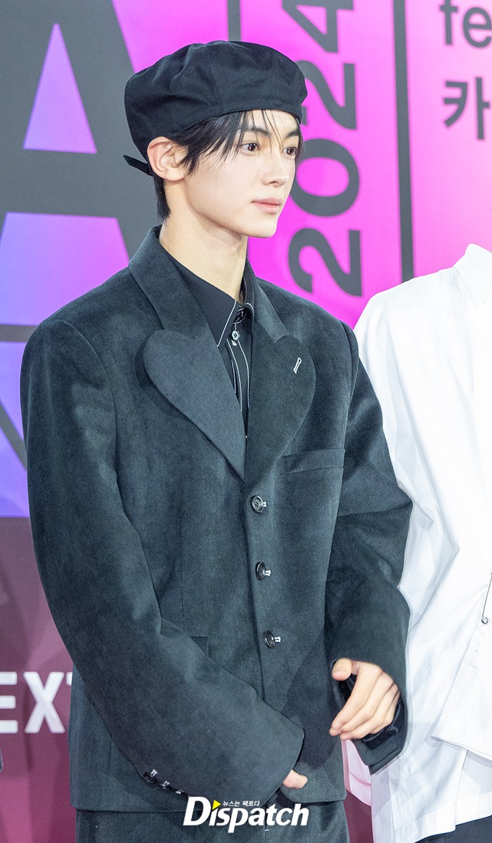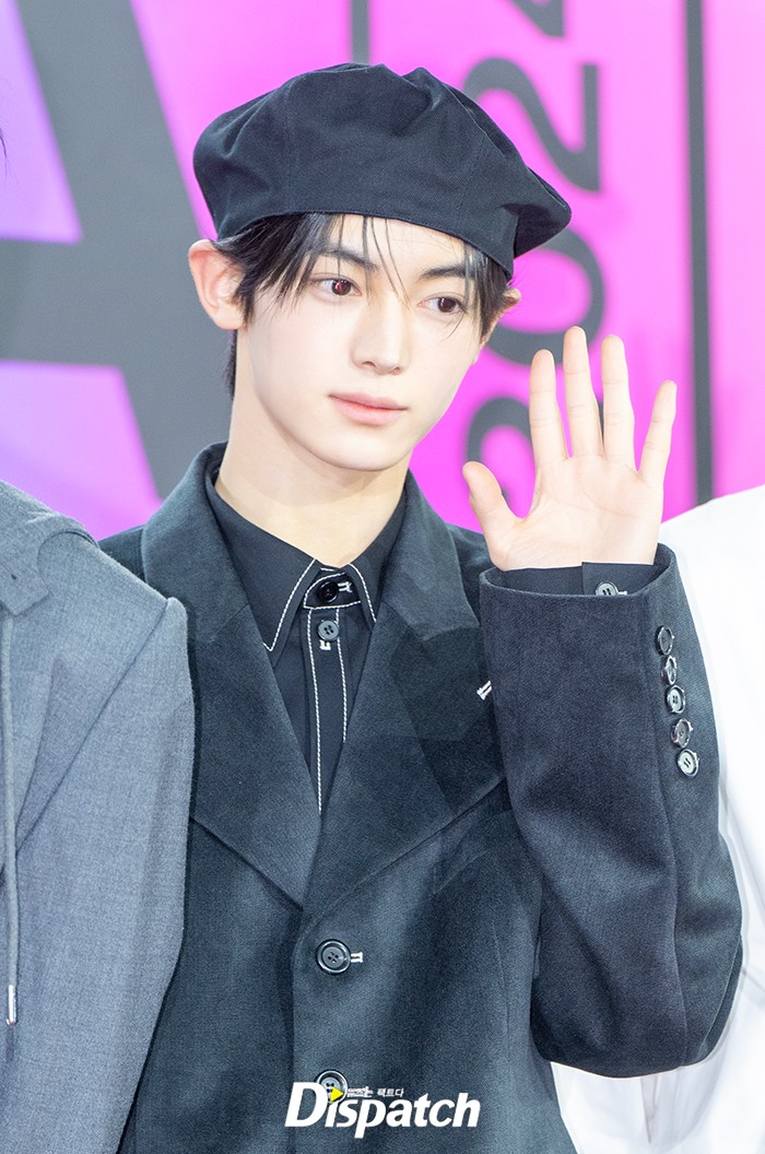 투어스 한진은 올블랙 의상에 모자로 포인트를 줬다. 사슴 같은 눈망울이 돋보였다.