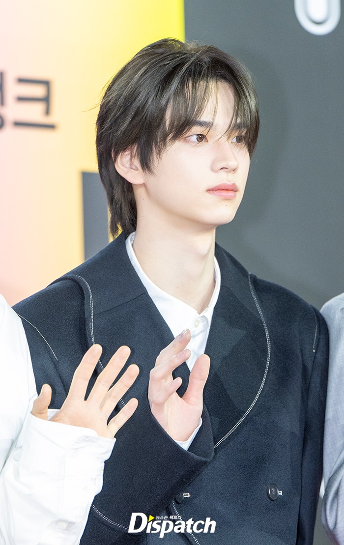 투어스 신유는 오버사이즈 블랙 의상으로 멋진 스타일링을 보여줬다.
