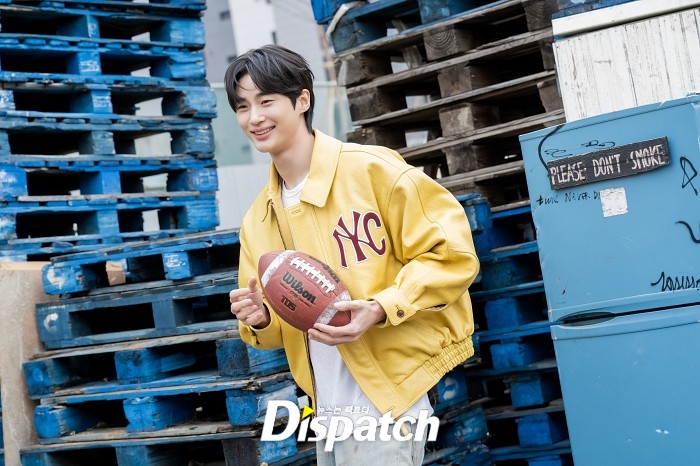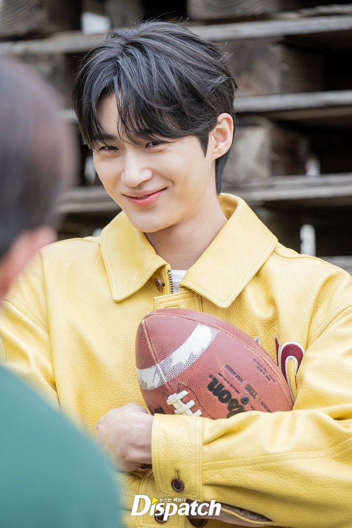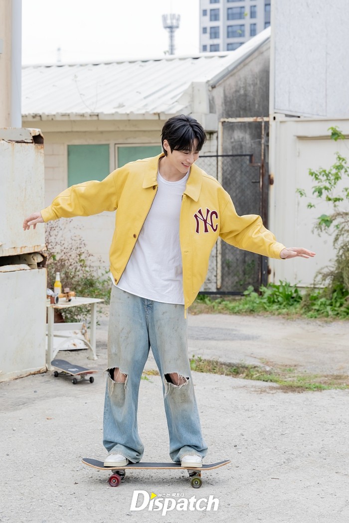 이번 콘셉트는 상큼함이 폭발했습니다. 야외로 나가 그의 활동적인 모멘트를 담았습니다. 변우석은 노란색 바시티 재킷을 입고 스포티한 매력을 뽐냈는데요.