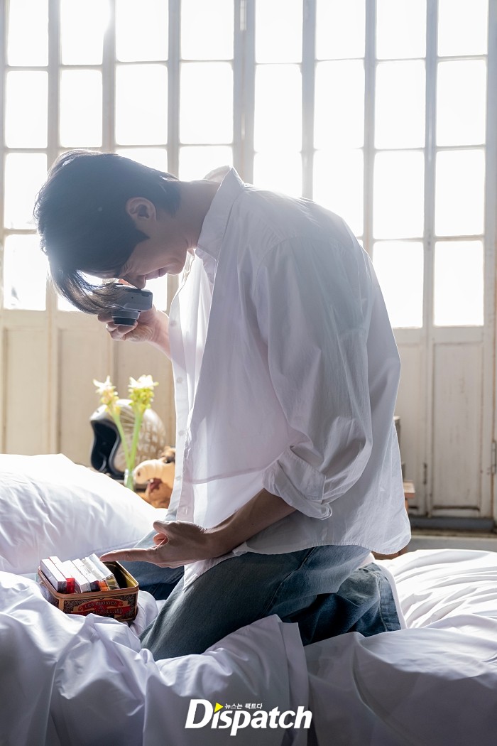 촬영은 막바지를 향해 달렸지만, 그의 체력은 떨어지지 않았습니다. 현장을 즐기는 모습이었는데요. 로드무비의 주인공처럼 자유분방함을 드러냈습니다. 소품을 활용해 한껏 여유 있는 분위기를 만들어냈는데요.