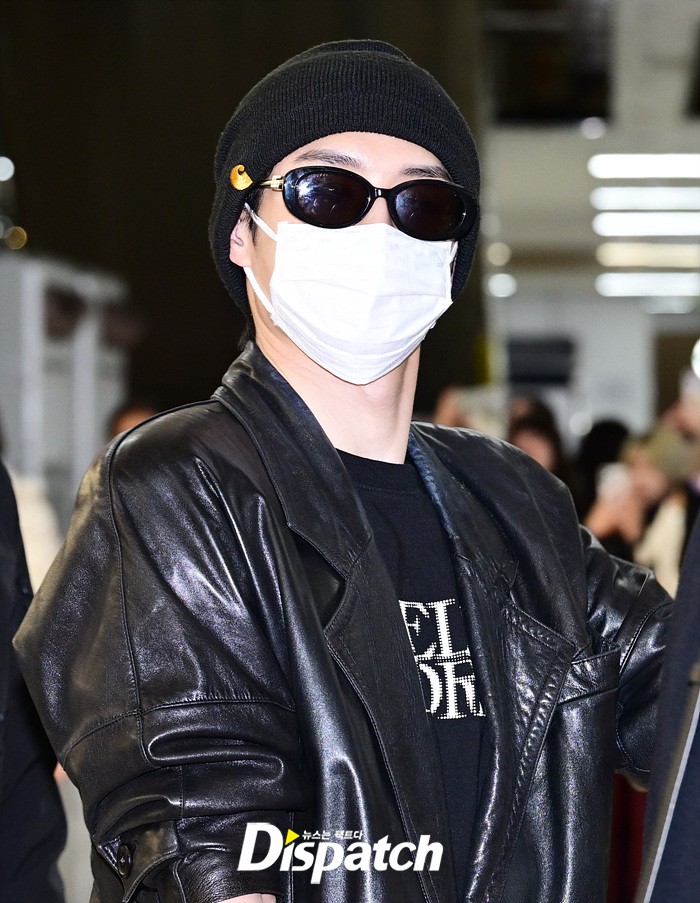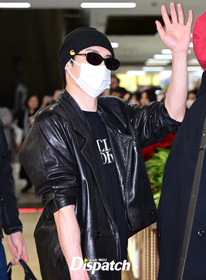 김지웅은 가죽재킷과 비니, 선글라스로 시크한 공항패션을 연출했다. 공항에 모인 팬들을 위해 손인사로 화답했다.