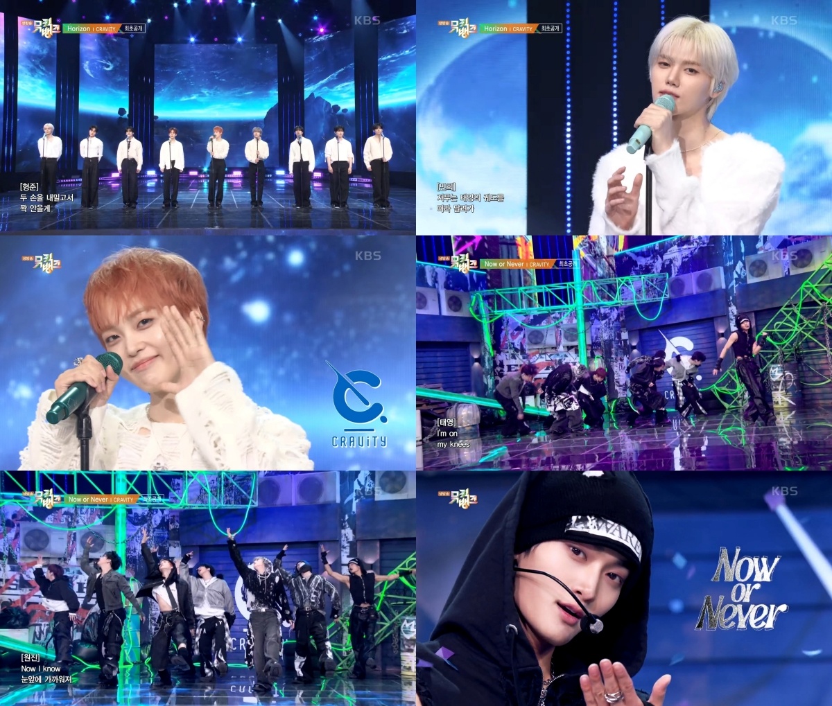 크래비티는 지난 6일 KBS-2TV '뮤직뱅크'에 출연했다. 신곡 '나우 오어 네버'(Now or Never)와 '호라이존'(Horizon) 무대를 선보였다.