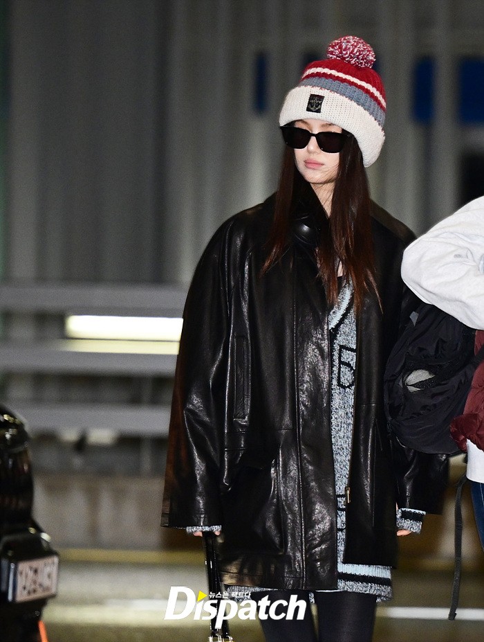 다니엘은 가죽소재의 재킷과 니트 가디건, 털모자로 한겨울 패션을 완성했다. 화장기 없는 얼굴에도 청순한 매력이 돋보였다.
