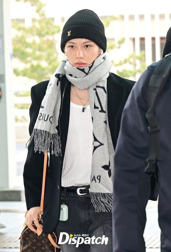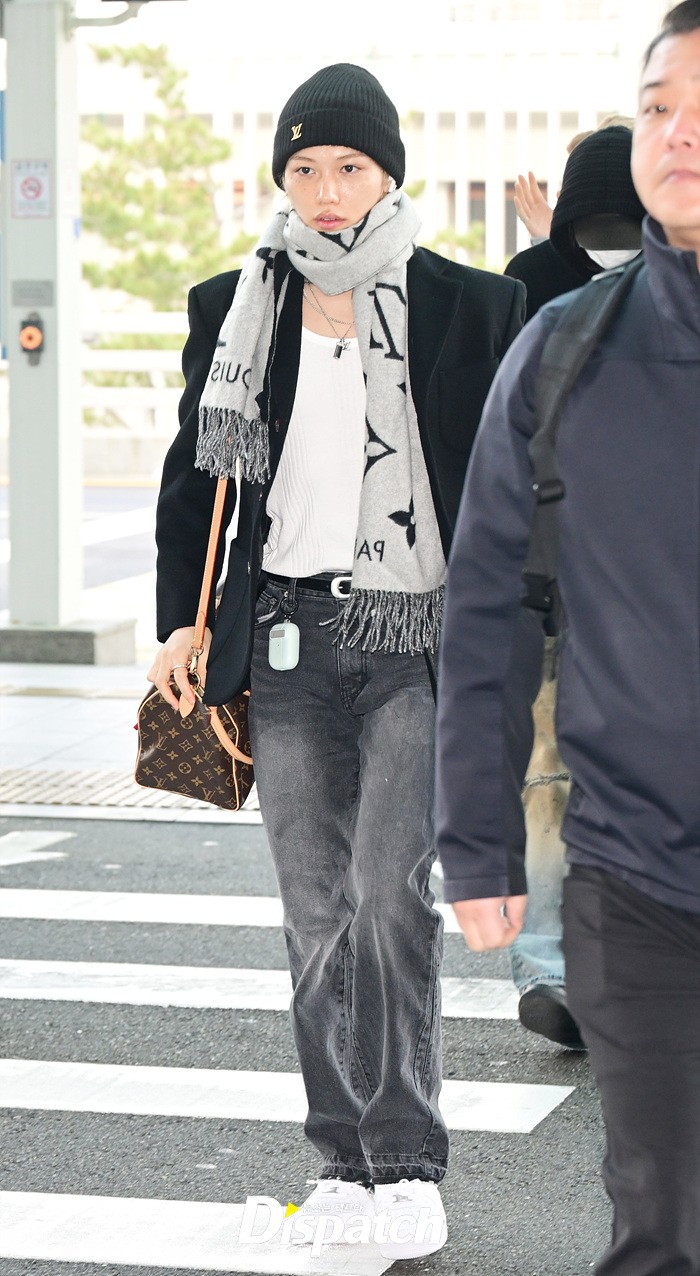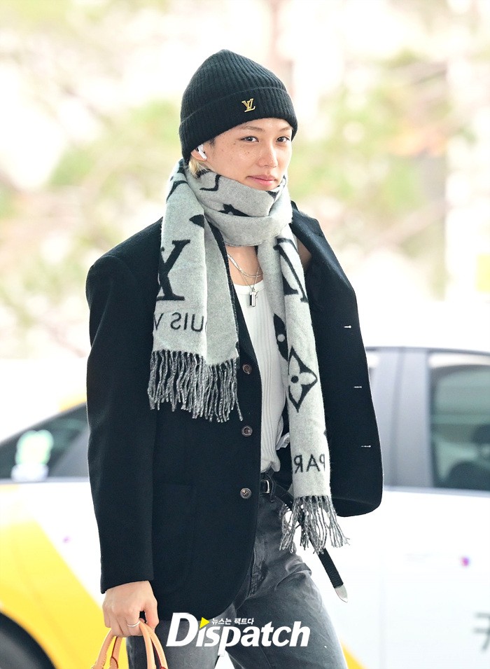 필릭스는 블랙 재킷과 데님진, 비니와 머플러로 남다른 패션감각을 뽐냈다. 이른 아침에도 훈훈한 비주얼이 돋보였다.